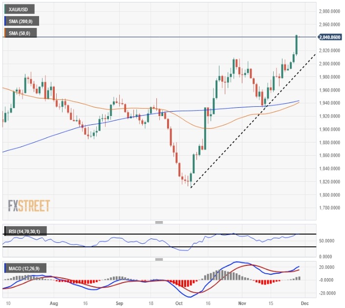 - 금은 금요일 아침 아시아 세션에서 0.17% 상승, $2,040 주변에서 견조한 포지션을 유지합니다.