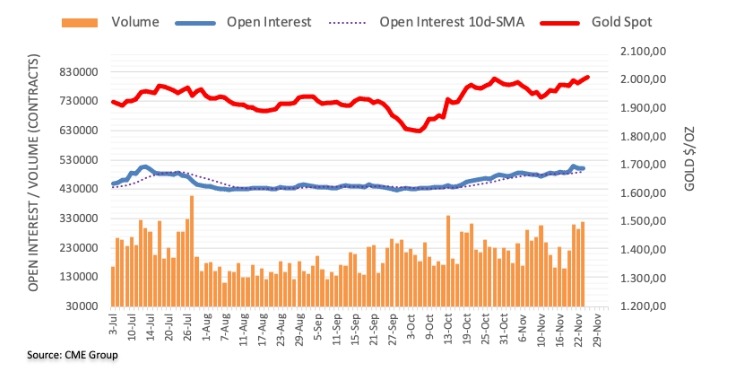 금 선물: 카드에 수정 움직임이 나타납니다. 금 선물 시장의 미결제약정은 금요일 두 번째 세션 동안 연속 감소했는데, CME 그룹의 예비 수치에 따르면 이번에는 약 2500계약이 감소했습니다. 반면 거래량은 다시 상승세를 이어가며 약 25,700계약 증가했습니다. 금: 다음 탭에서는 2023년 최고가가 $2070에 근접할 것입니다. 금 가격은 지난주 말 상승세를 이어가며 주요 장벽인 트로이온스당 2000달러를 넘어 마감했습니다…
