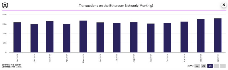 ● 이더리움의 1월 월간 거래량은 3602만건에 달했다. ● 이는 2022년 7월 이후 가장 높은 월간 수치다. ● 네트워크에 대한 수요가 급증했음에도 불구하고 NFT 판매량과 DeFi TVL은 감소세를 보였습니다. 월간 거래량은 3602만건으로 20개월 만에 최고치를 기록한 이더리움(ETH) 1. 사용자 활동 급증 더 블록 데이터(The Block Data) 대시보드에 따르면 지분…