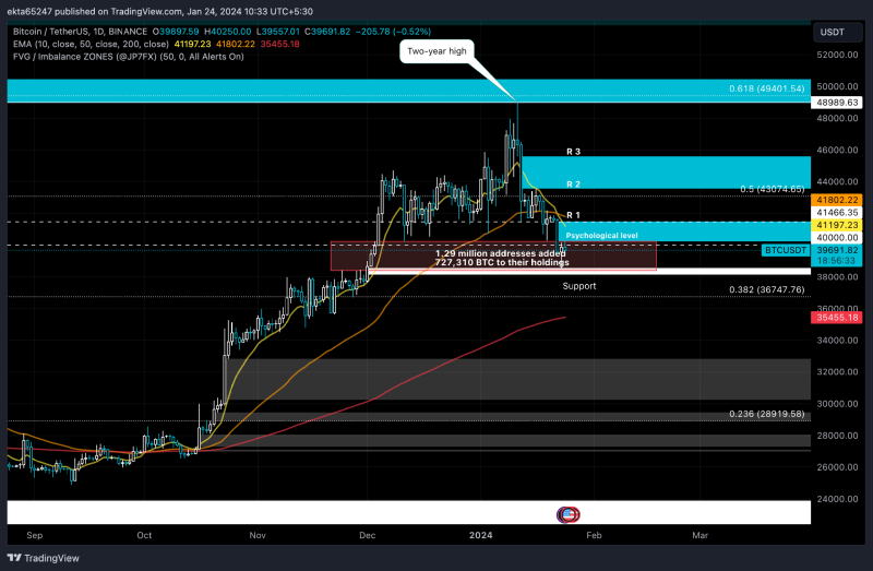 ● BTC는 $41,396에서 $40,288까지 일일 FVG에 태그를 붙인 후 상승 추세를 재개할 가능성이 더 높습니다.