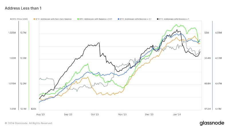 ● 비트코인 가격은 2024년 시가 $42,479, 2024년 POC $42,643보다 높습니다.