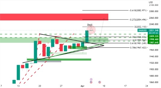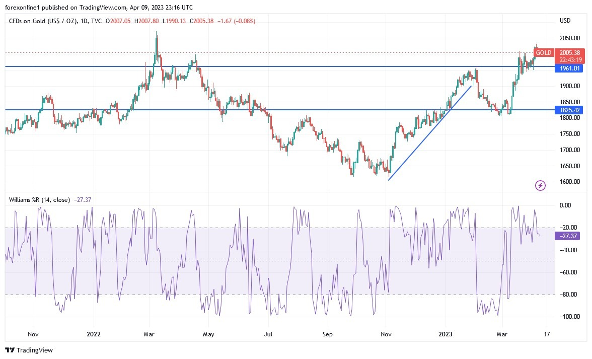 금 가격은 61.8% 피보나치 되돌림 근처에서 2,000달러를 움직이고 있습니다.