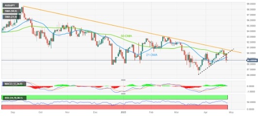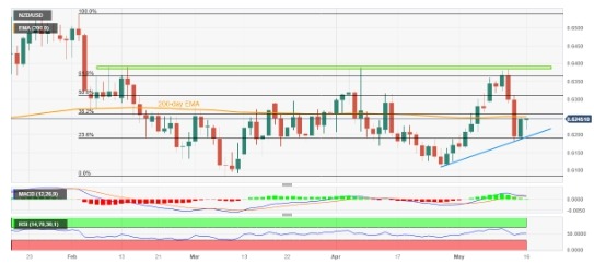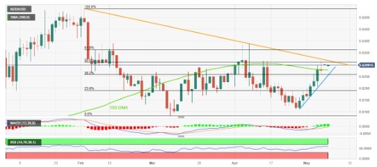 - NZD/USD는 0.6386에서 시작된 하향 추세선 근처에서 지속적으로 압박을 받고 있습니다.