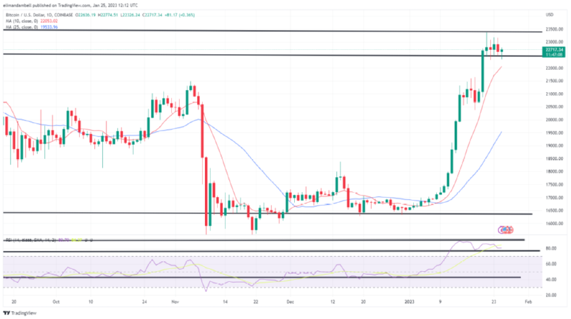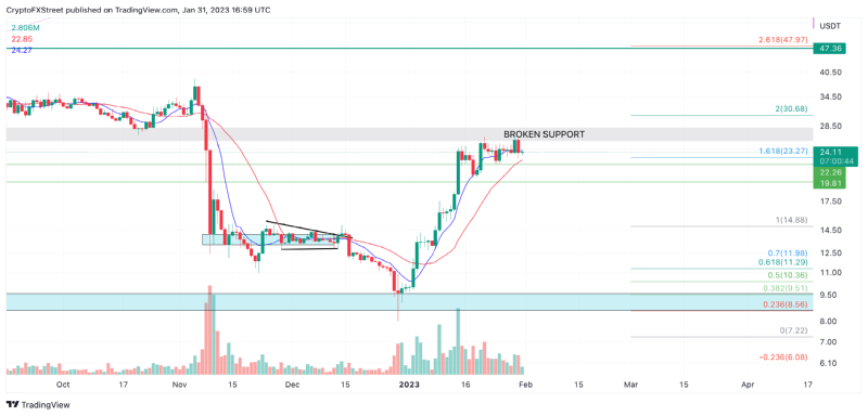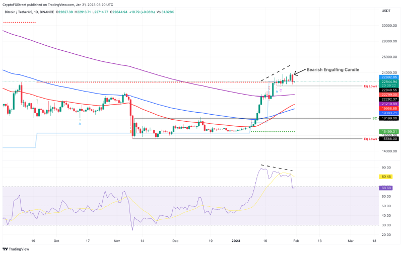 ▶Bitcoin 가격은 강세 오름세에 균열을 보이며 매도가 임박했음을 시사한다. 일간 차트의 다른 발전과 결합된 약세 다이버전스는 7%에서 15% 되돌림 가능성이 있음을 보여줍니다. ▶BTC가 매일 24,000달러 이상의 캔들을 형성하면 약세 전망이 무효화된다. ▶Bitcoin 가격은 1월 1일 이후 꾸준한 상승세를 보이며 지금까지 멈출 기미를 보이지 않고 있다.하지만, 1월 29일의 캔들이 닫히면서 상황은 바뀌기 시작하고 있고 다가…