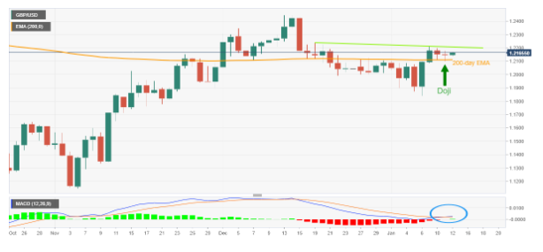 GBP/USD 가격 분석: DOJI가 200일 EMA를 형성함으로 1.2110 이상 강세