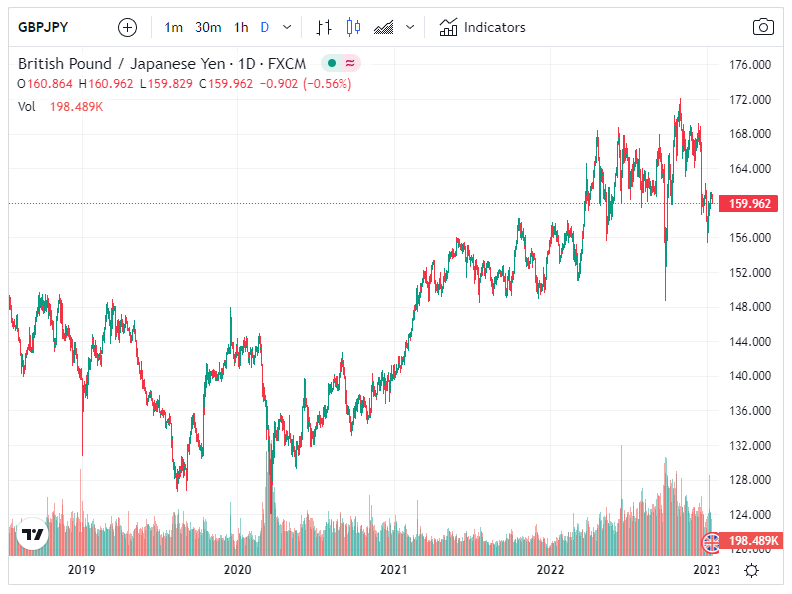 GBP/JPY는 BOJ가 10년 동안 지속된 완화 정책의 영향을 검토함에 따라 거의 160.20까지 폭락