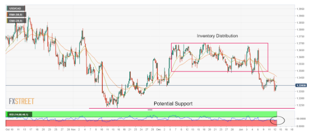USD/CAD는 투자자들이 캐나다 인플레이션 발표를 기다리면서 1.3400 근방에서 통합될 것으로 예상됩니다. 연준의 12월 인플레이션 보고서의 둔화로 25bp의 금리 인상을 기대할 수 있습니다. 캐나다 은행은 인플레이션 압력이 완화될 가능성이 있음에도 불구하고 금리를 계속 인상할 것입니다. USD/CAD는 수평 지지선인 1.3224까지 전반적으로 하락하고 있습니다. USD/CAD는 초기 아시아 세션에서 라운드 저항인 …