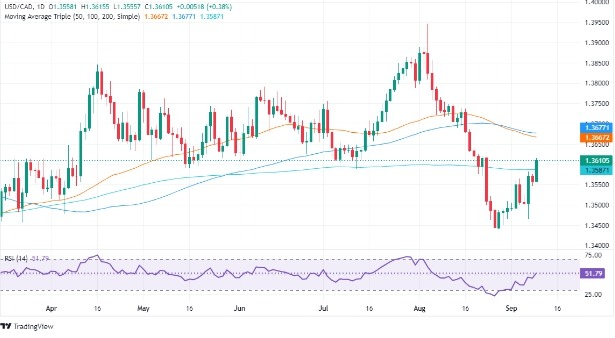 USD/CAD, USD 매도 재개로, 1.3600으로 하락
