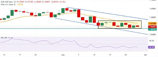 EUR/USD 가격 분석: 1.0700 미만에서 거래되고 통합 범위 내에 있음