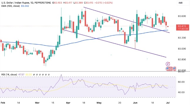 USD/INR, Fed Powell 증언 기대 속에 약간의 상승세 보여