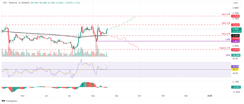 ✅ 리플 가격은 200일 EMA 주변에서 지지를 받고 있으며, 곧 랠리가 시작될 것으로 예상됩니다. ✅ 온체인 데이터에 따르면 XRP의 미결제 약정이 증가하고 있으며 롱숏 비율이 1보다 높아 앞으로 강세 추세가 예상된다는 신호입니다. ✅ 일봉 캔들이 0.544달러 이하로 마감되면 강세 이론은 무효화됩니다. 리플(XRP)은 200일 지수 이동 평균(EMA)을 재테스트했고 월요일에 6.7% 상승했습니다…
