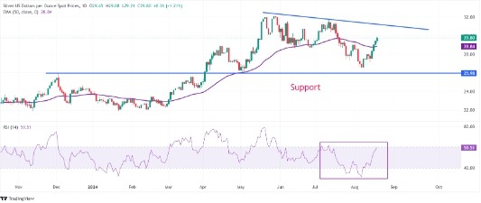 은 가격 예측: 9월 금리 인하 추측 속 30달러로 급등