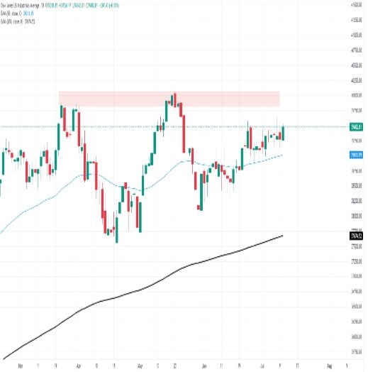 다우 존스 산업평균지수(DJIA)는 39,500.00으로 급등했는데, 이는 잠재적인 금리 인하에 대한 기대에 힘입은 시장 낙관론을 반영한 것입니다. 연방준비제도이사회 의장 제롬 파월이 의회에서 이틀간 증언한 후, 투자자들은 이번 주 후반에 발표될 주요 미국 인플레이…